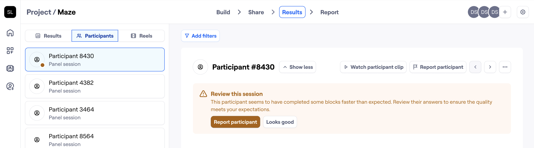 Getting high-quality data from your unmoderated studies is essential for making confident decisions. At Maze, we’ve built several features to help ensure participants are engaged and providing thoughtful responses.