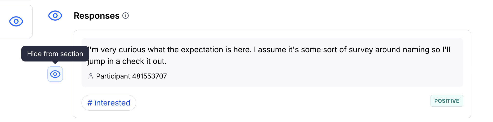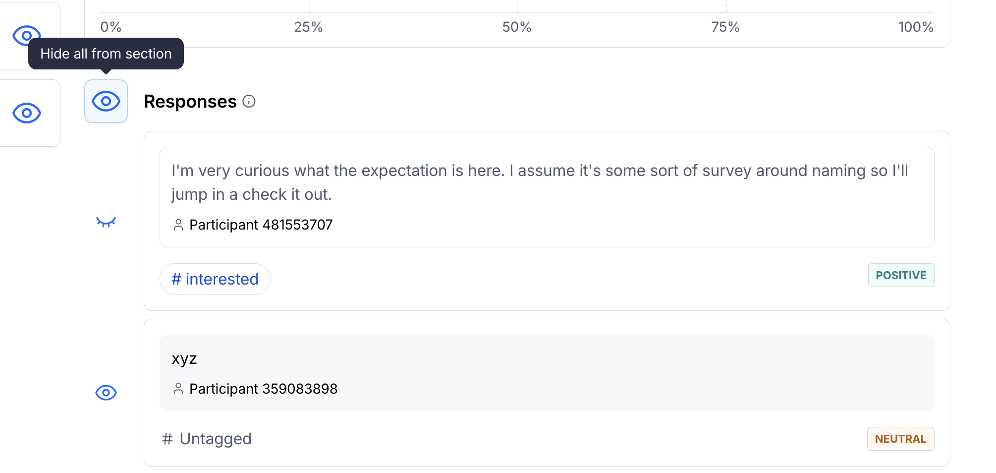 - To hide a specific answer, click Hide from section.