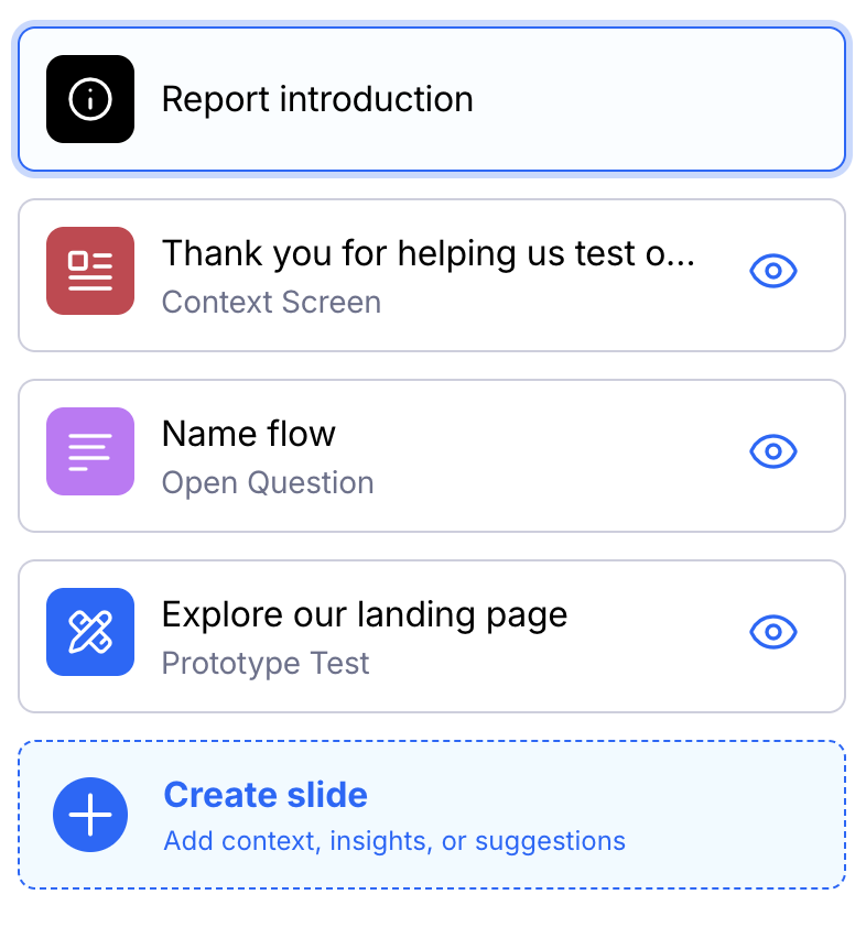 - At the bottom of the slides list, click + Create slide.