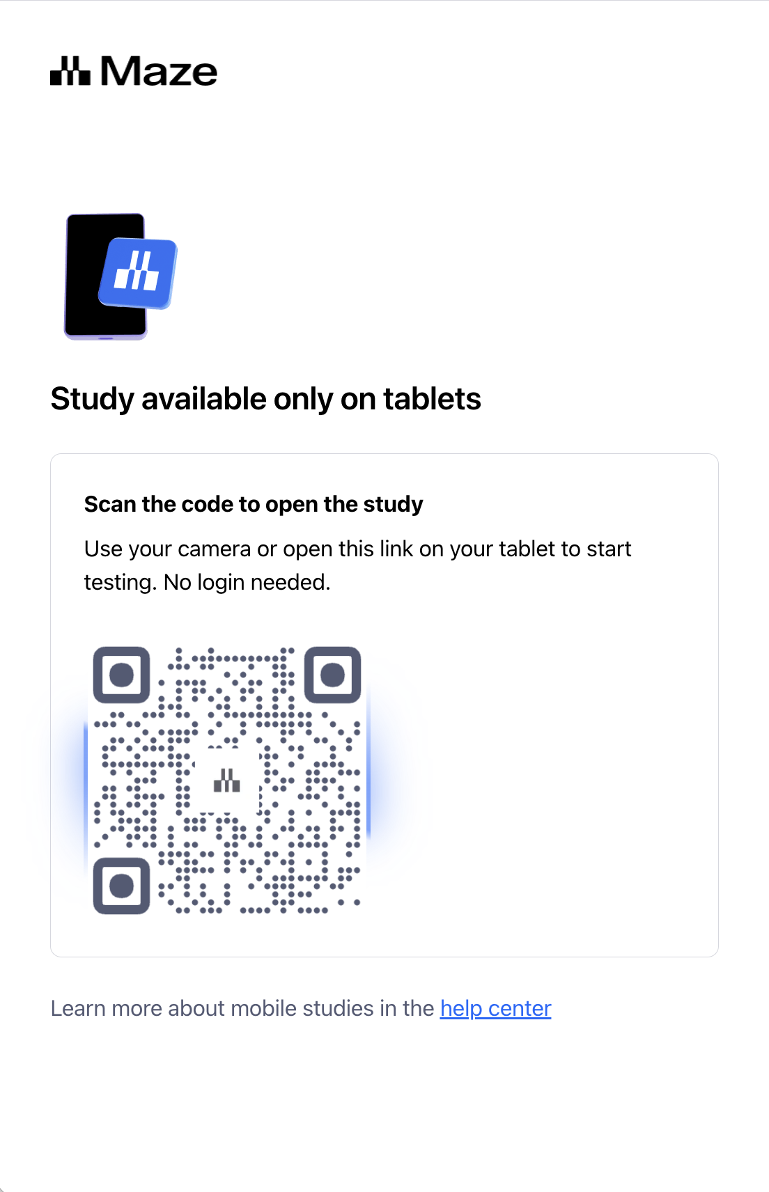 - To test a native app experience (via an App Test block), participants must also complete the study in the Maze mobile app.