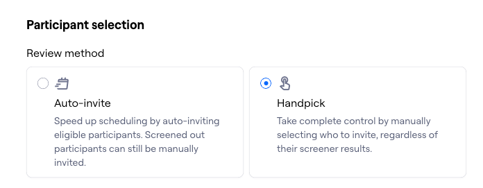 There are two ways to review and invite participants: Auto-invite and Handpick.