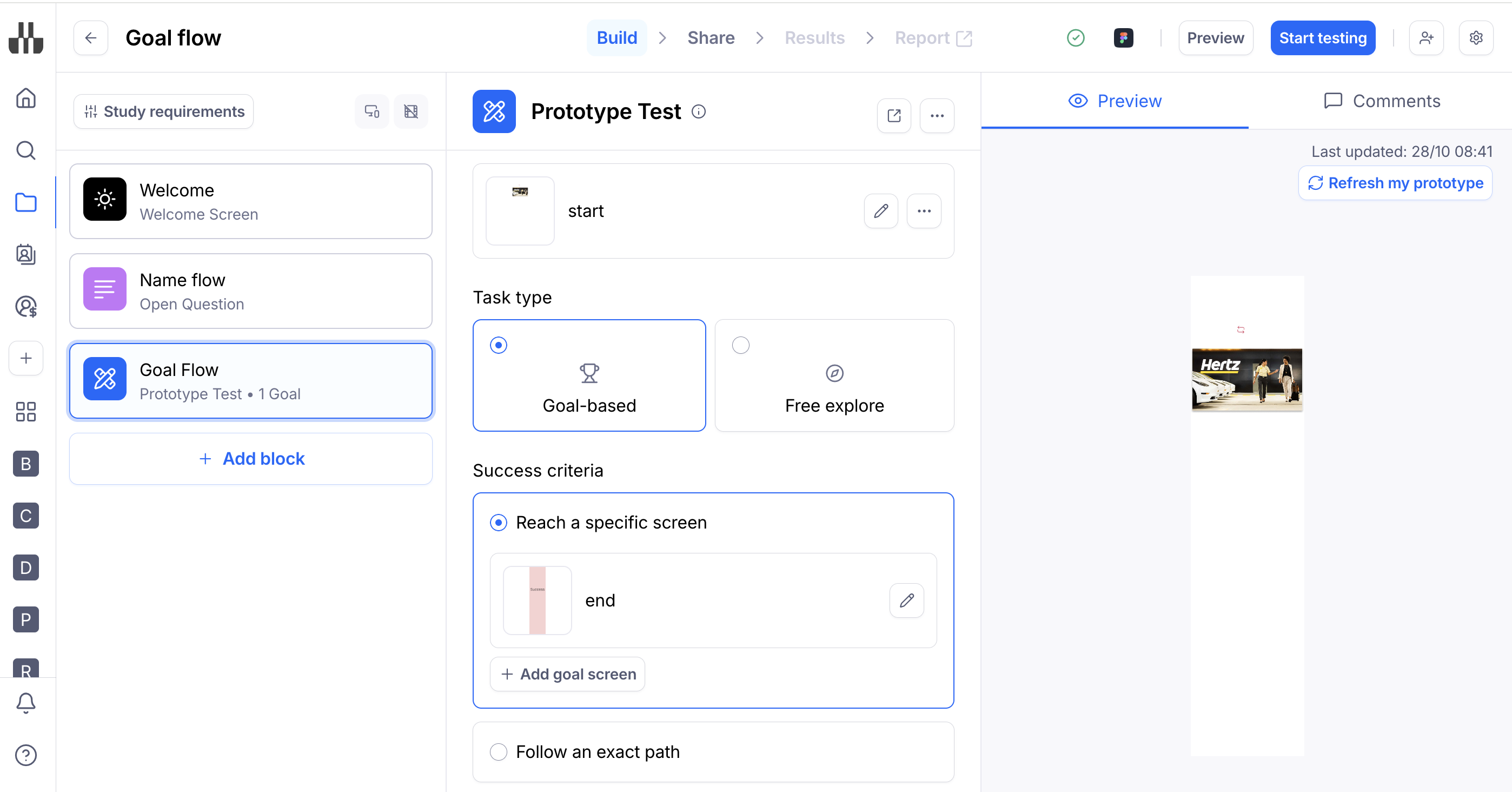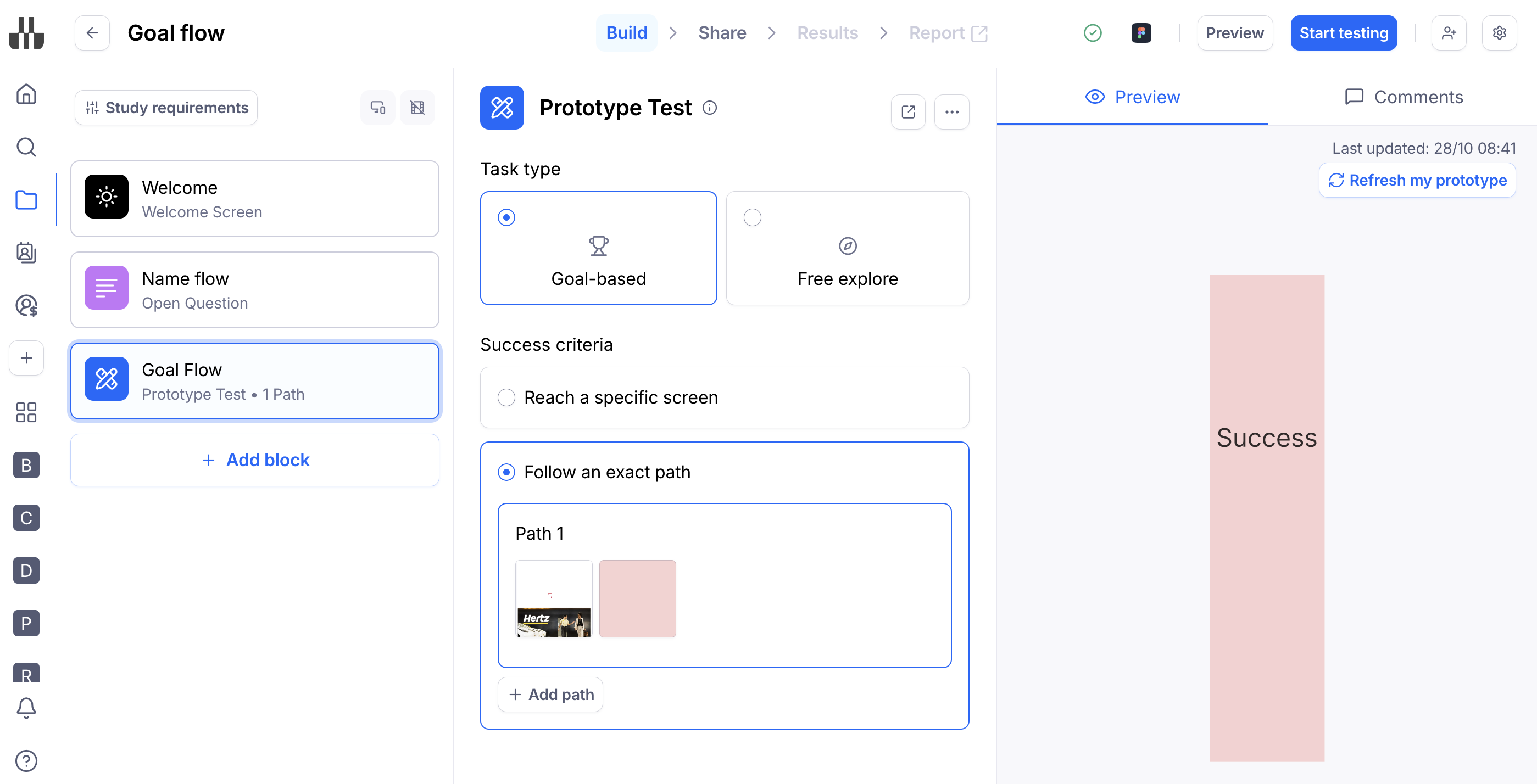 - Screen-based success: The mission is considered successful when participants reach a specific screen in the prototype. Learn more about defining success screens