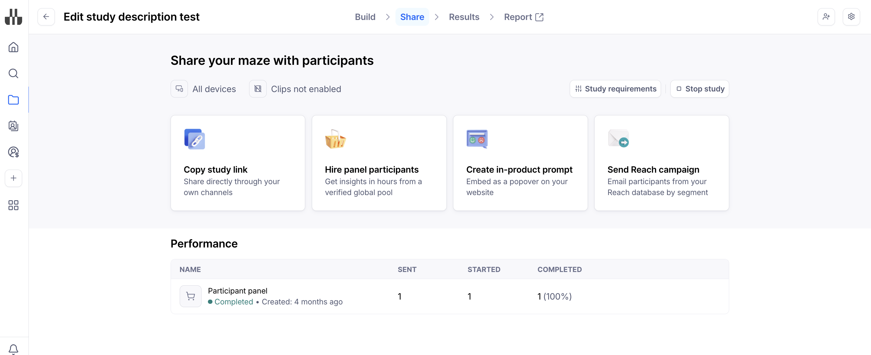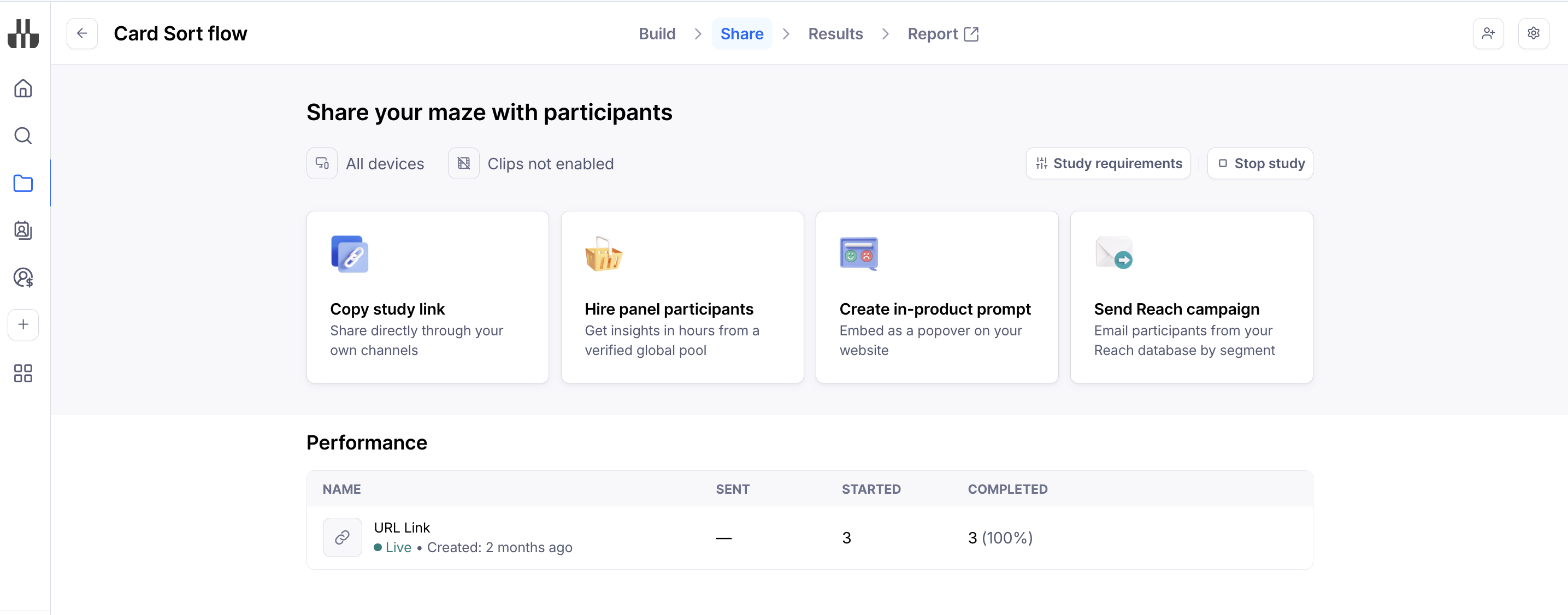 This article covers sourcing panel participants for unmoderated testing. Learn other ways to share your unmoderated study