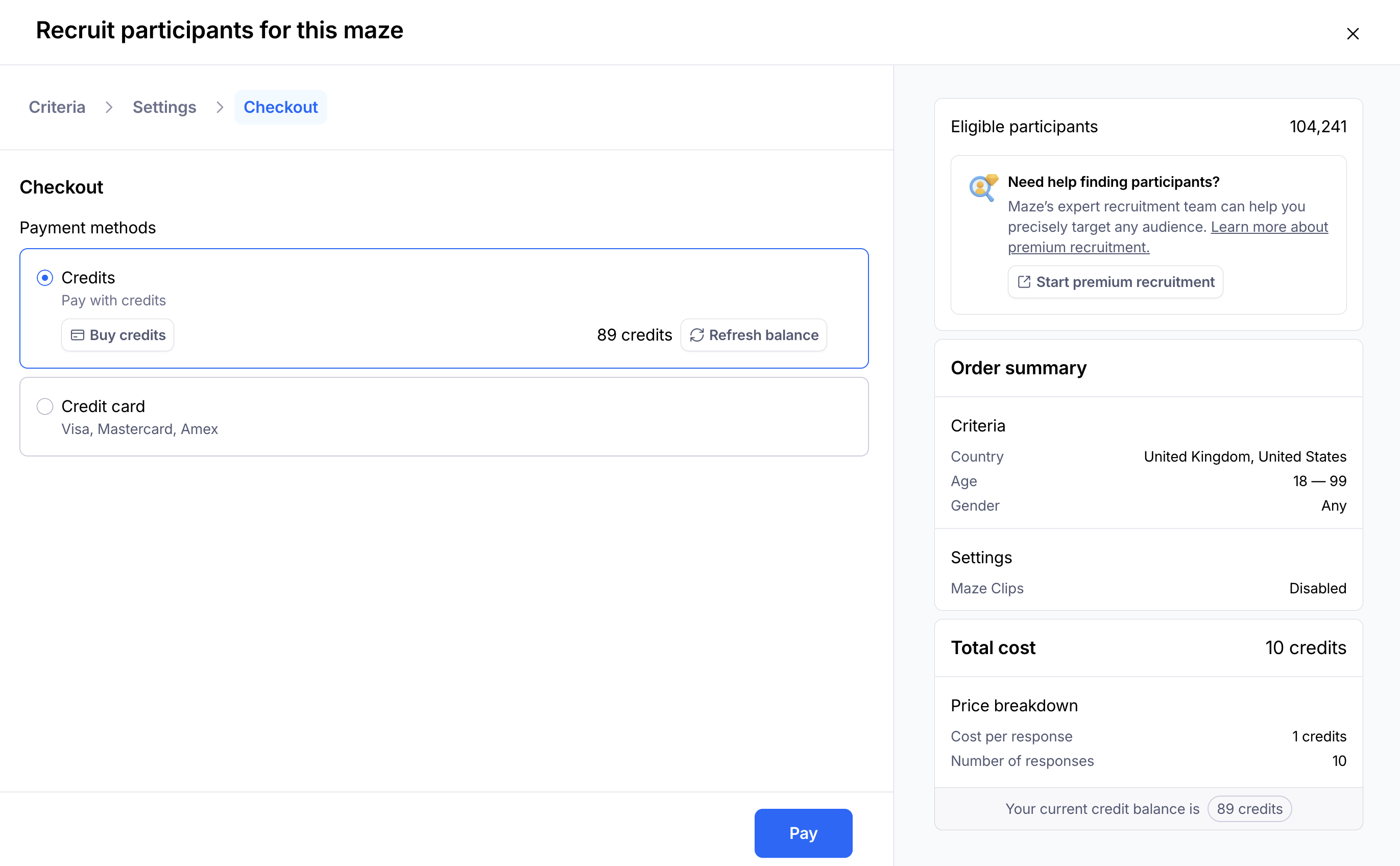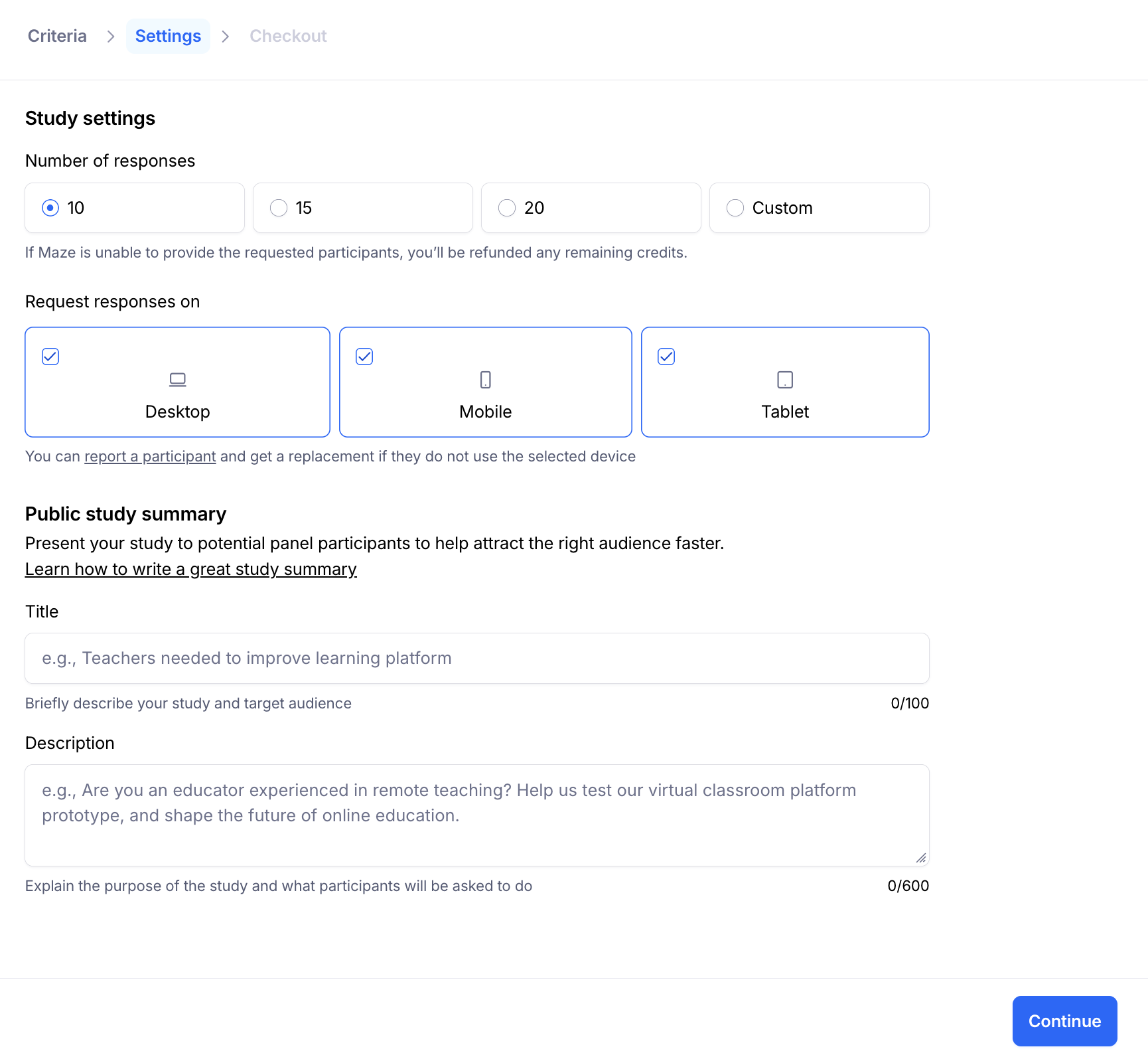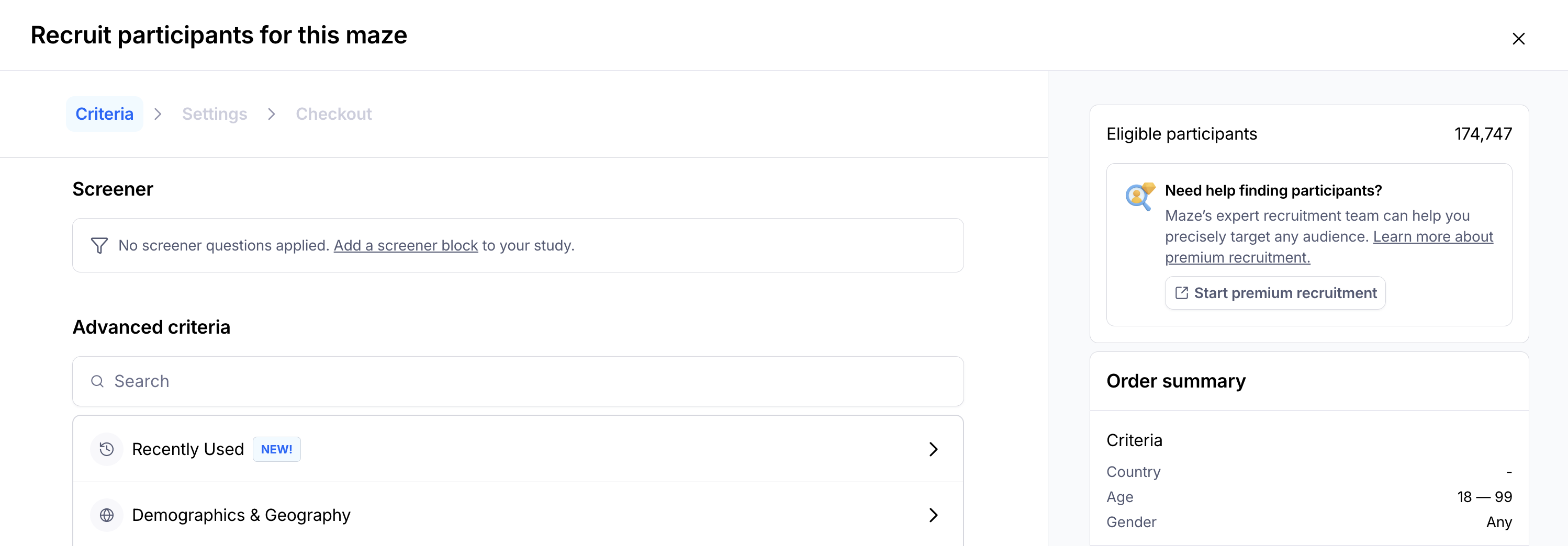 One of the ways to get your unmoderated study tested is by hiring participants from the Maze panel.