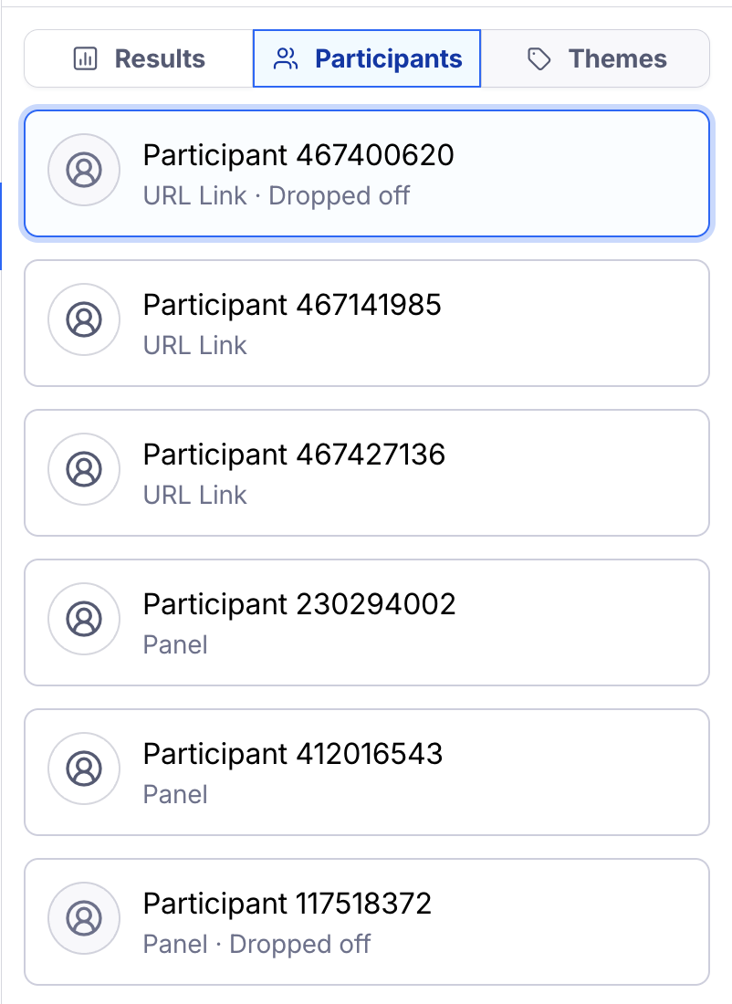 Participants who started the study but haven’t completed it appear with a ‘Dropped off’ label instead. Learn more