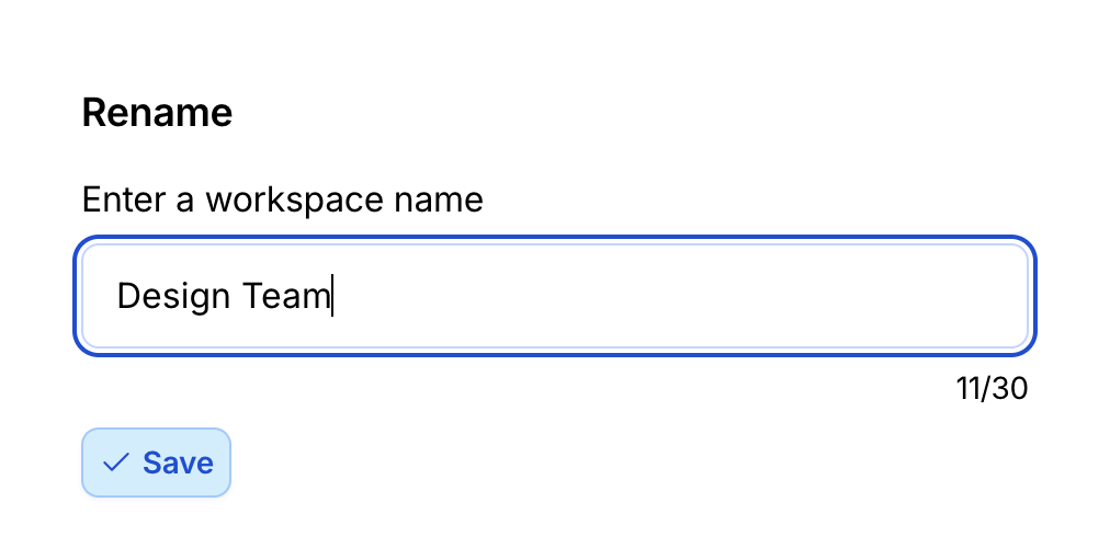 - Under Rename, enter a unique new name for the workspace. The name shouldn’t exceed 30 characters.