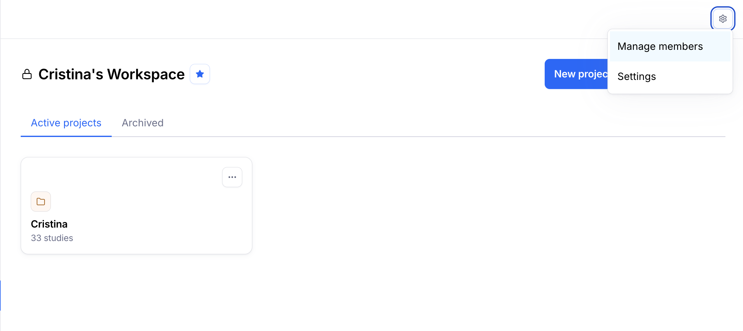 To find the list of members, click the ••• menu in the top right corner of the workspace.