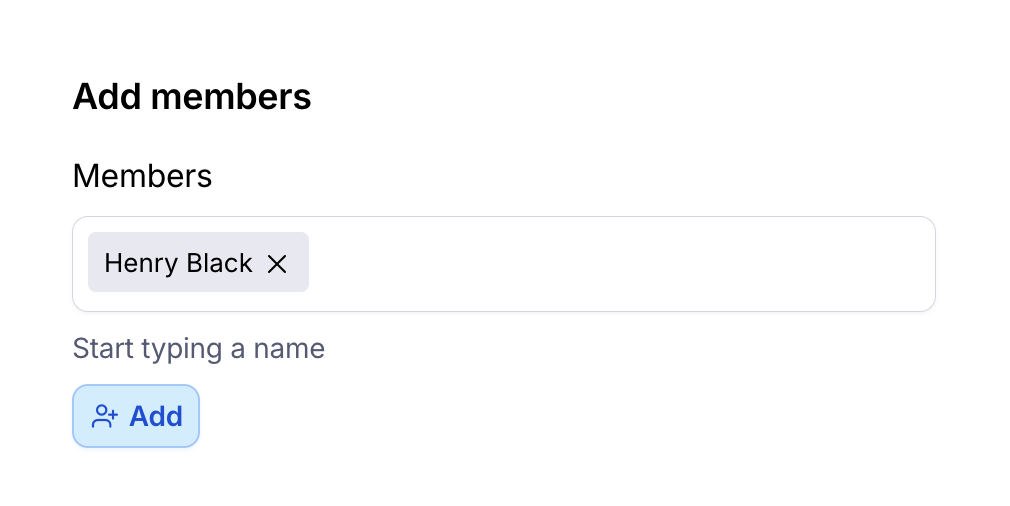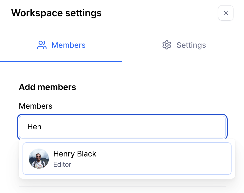 - Select the Members search box to see a list of all team members you can add. You can also search by the name of the member you want to invite.
