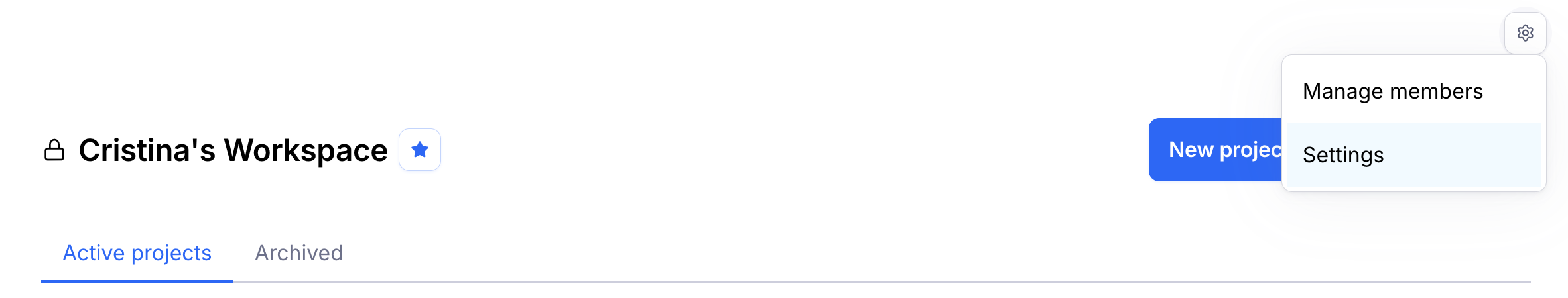 To open the workspace settings, open the relevant workspace and click the Settings menu.