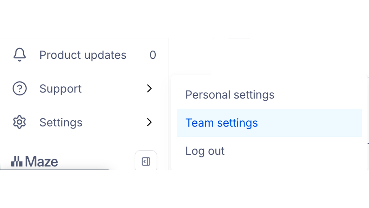 Hover over Settings at the bottom left corner of the side navigation, and click Team settings.