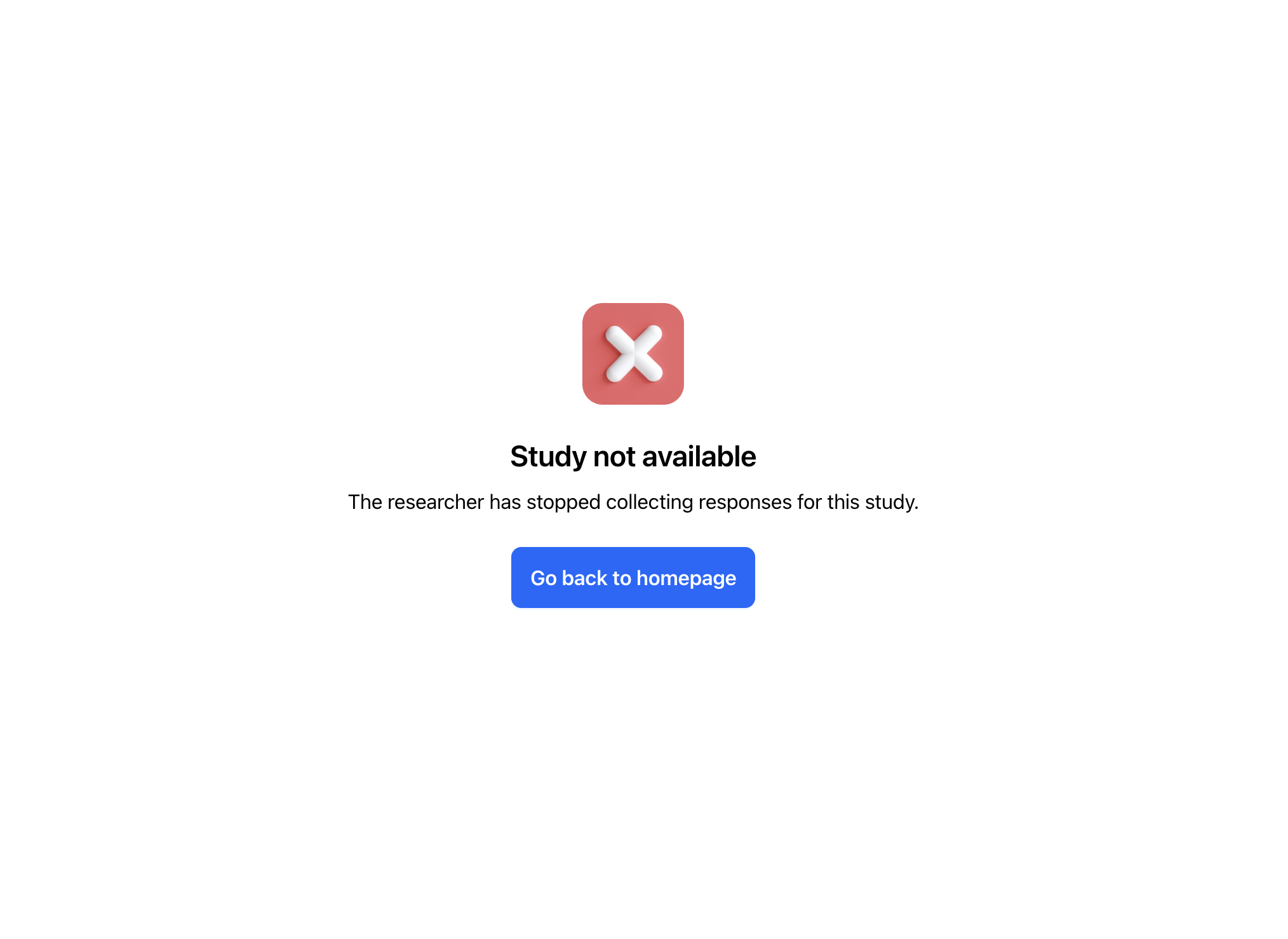 Mazes that exceed 2000 responses will automatically stop collecting results. Participants can no longer open the maze link and they’ll see the following message instead: