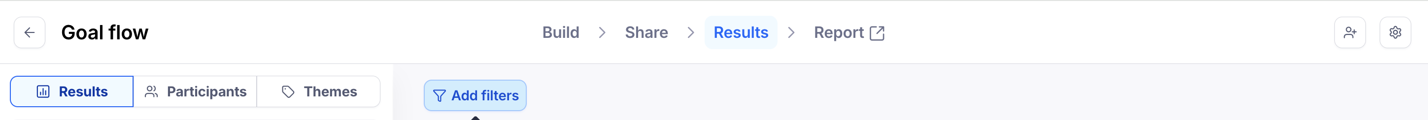 It’s often helpful to refine the results data to help answer specific questions. Filters allow you to narrow down your results data based on participant metadata or by block answer/outcome.