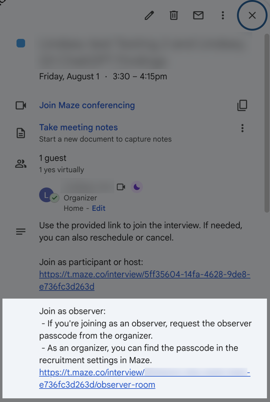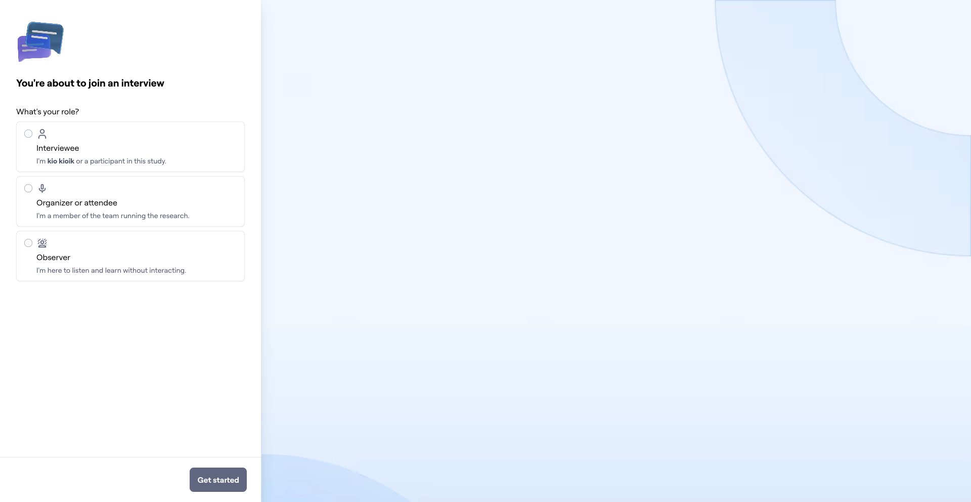 If you are not logged into Maze already and are joining an interview as an observer, access the link shared with you and you'll be prompted to enter your role, details and accept any relevant permissions.