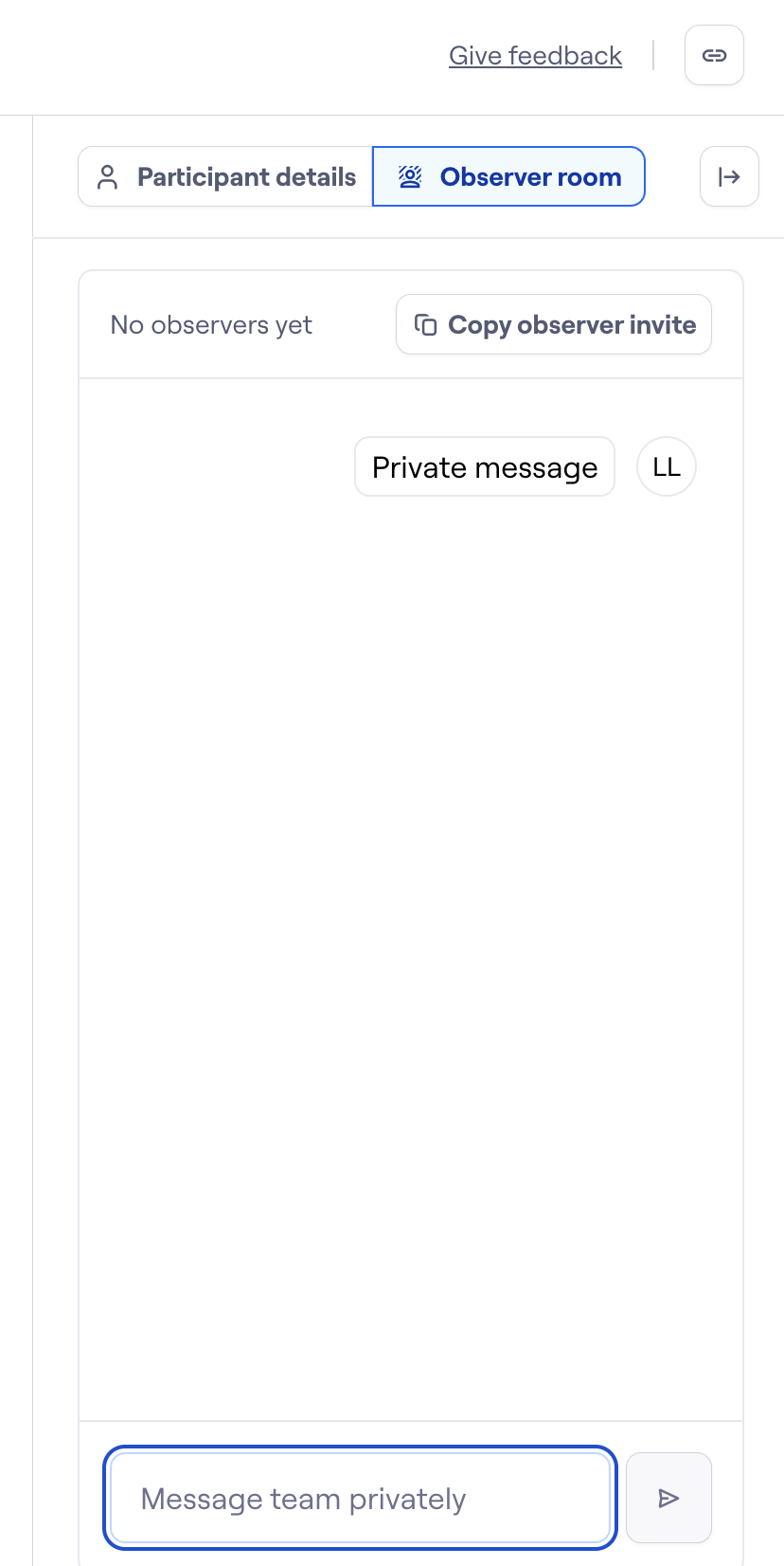 Researchers can now seamlessly and discreetly bring stakeholders into live interview sessions without being visible to the participant.