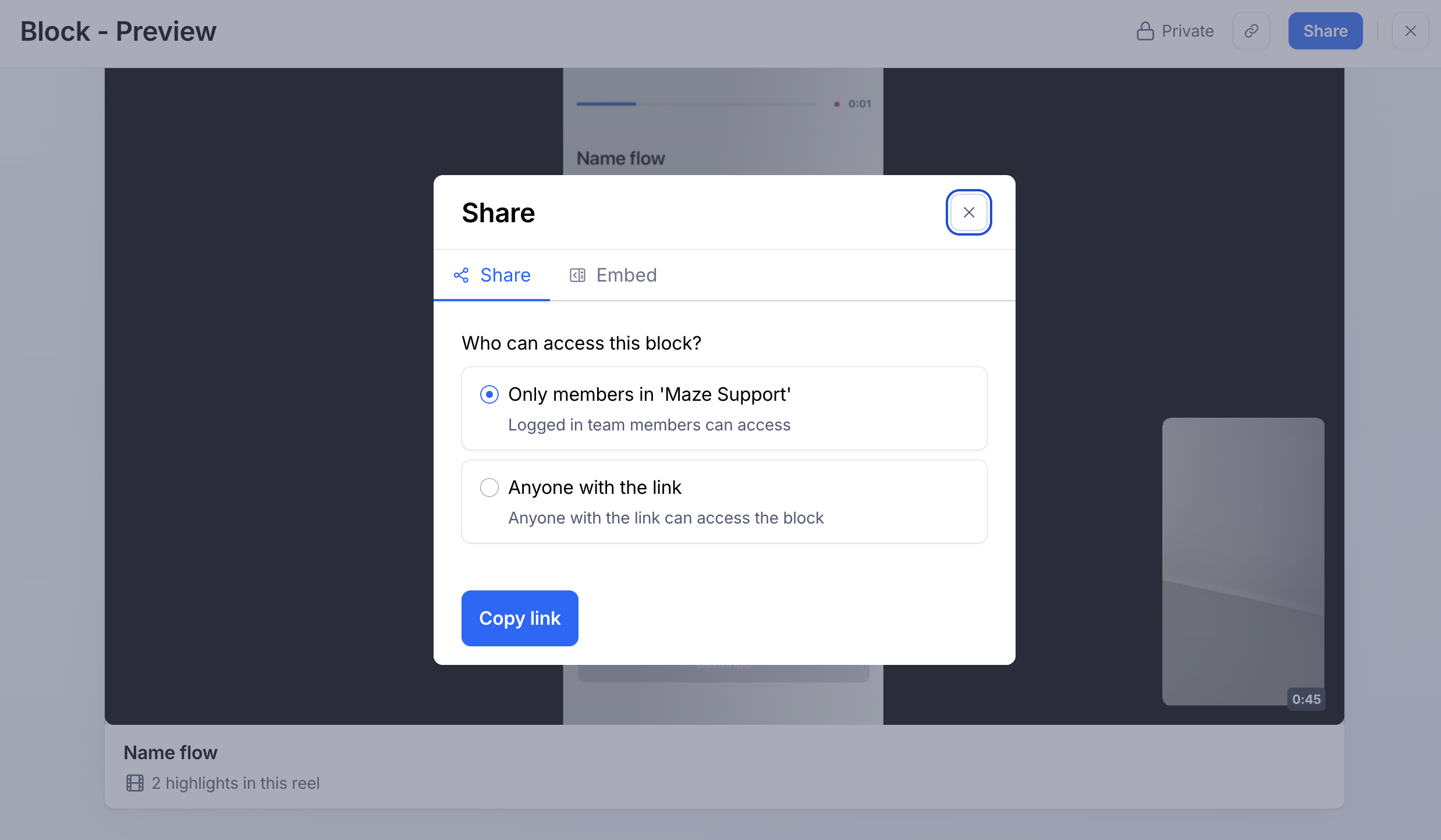 If someone outside of your Maze team attempts to open a private share link, they’ll see the following error: