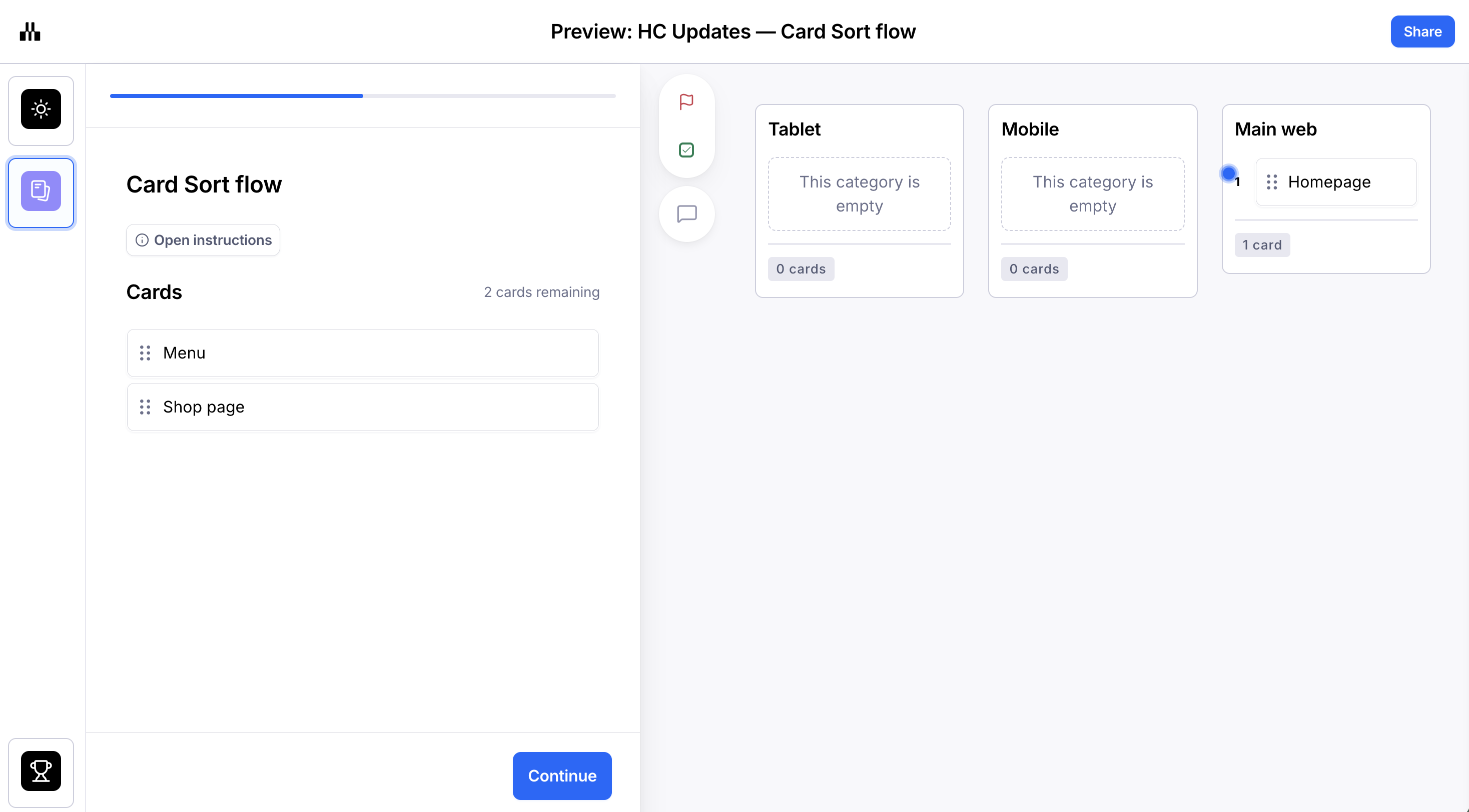 - Open a card sort block in a draft maze.