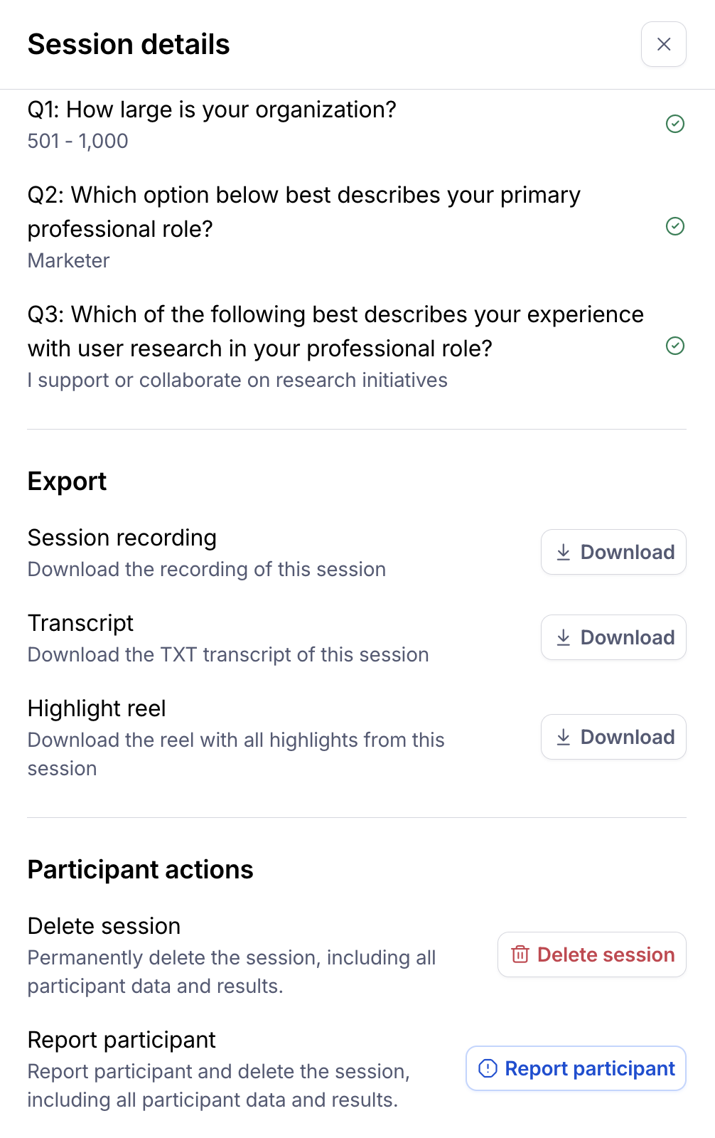 Click on the participant's session to open it and click the Report participant button to initiate the replacement process.