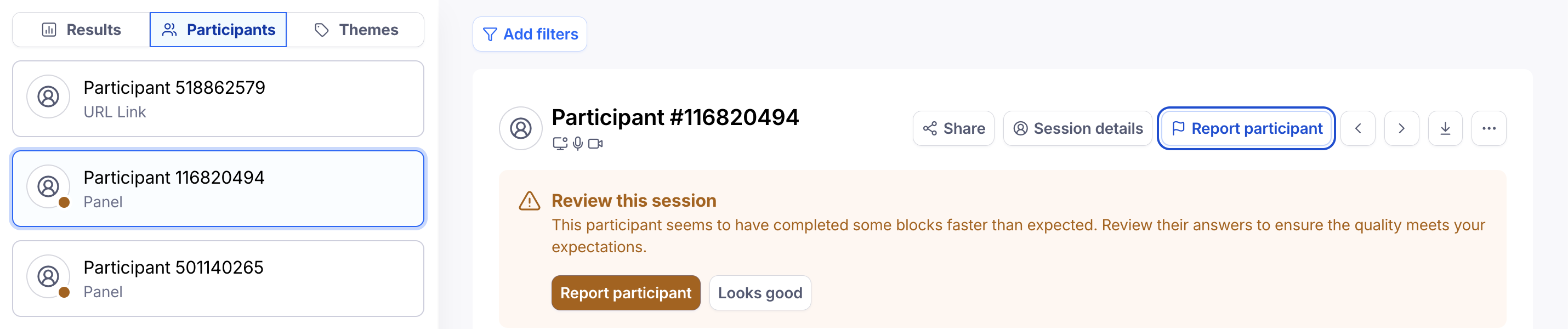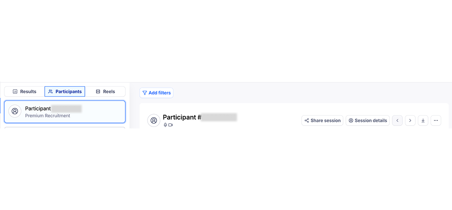 Within your Results section, you can identify your sessions from Premium panel recruitment via the Participants tab in the image below.