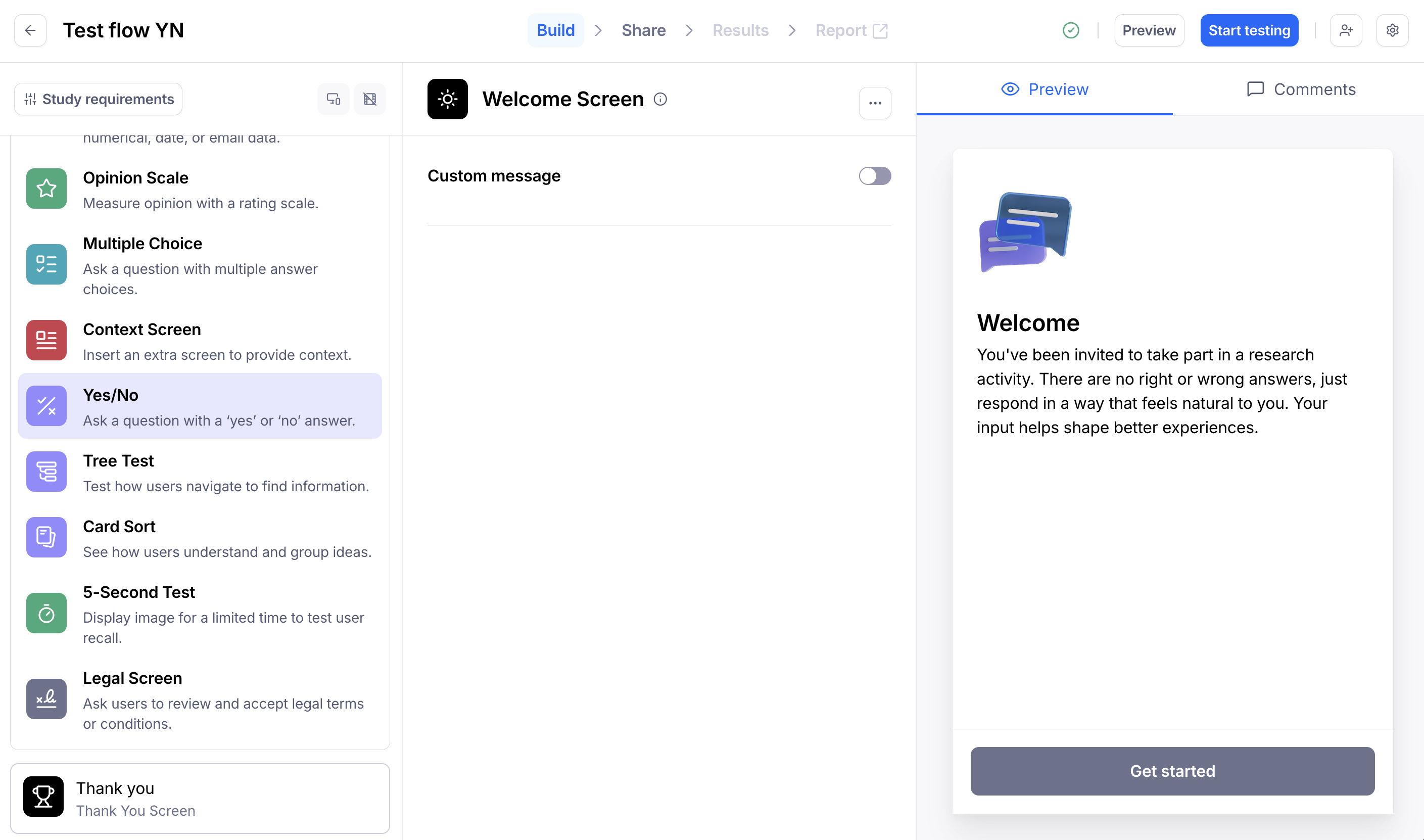 Ask a Yes/No question when you want a closed-ended answer to your question: 'Yes' or 'No'. Participants can indicate their preferences by selecting one answer. With this question type, you can measure the preference between the two choices.