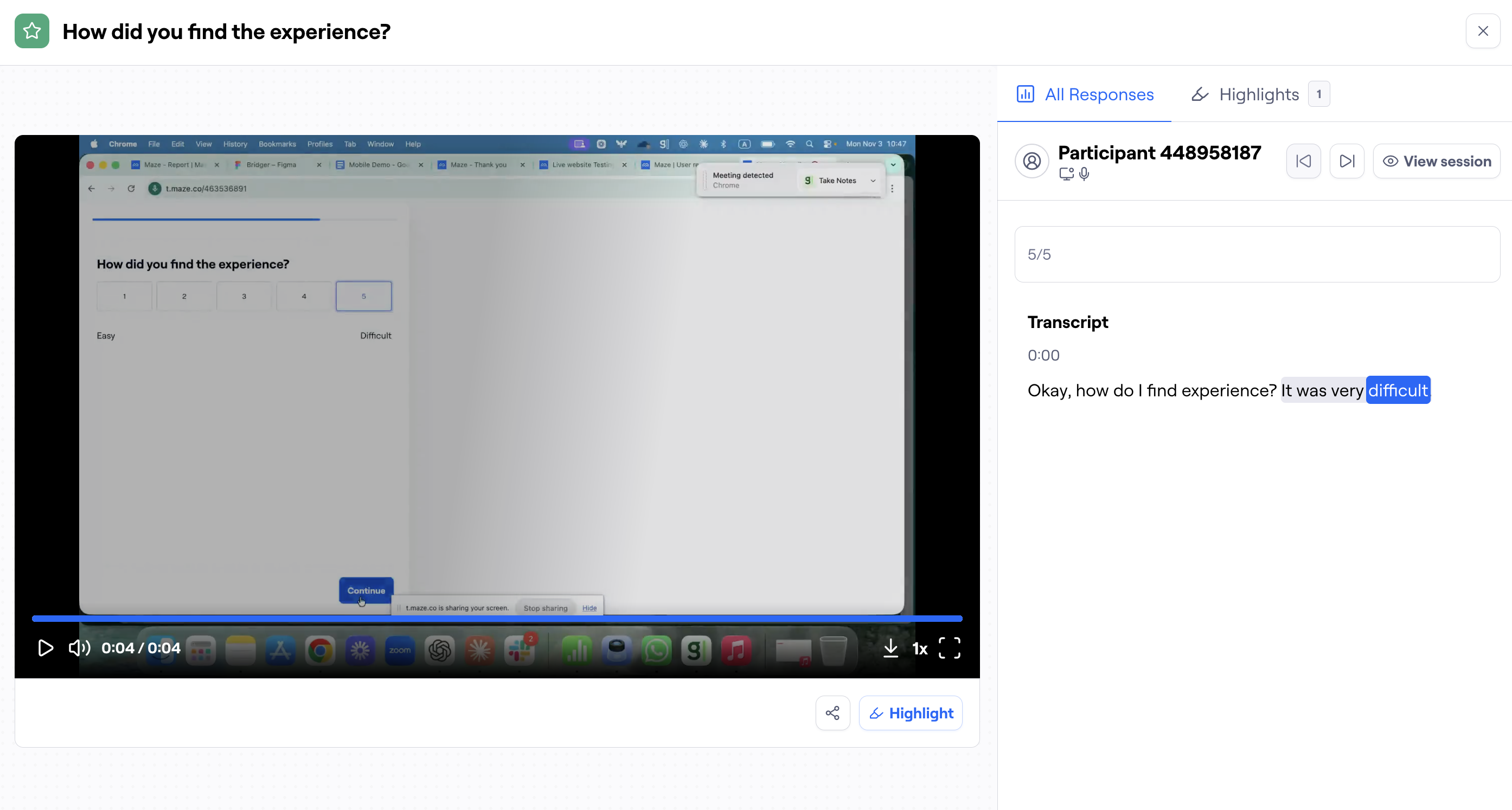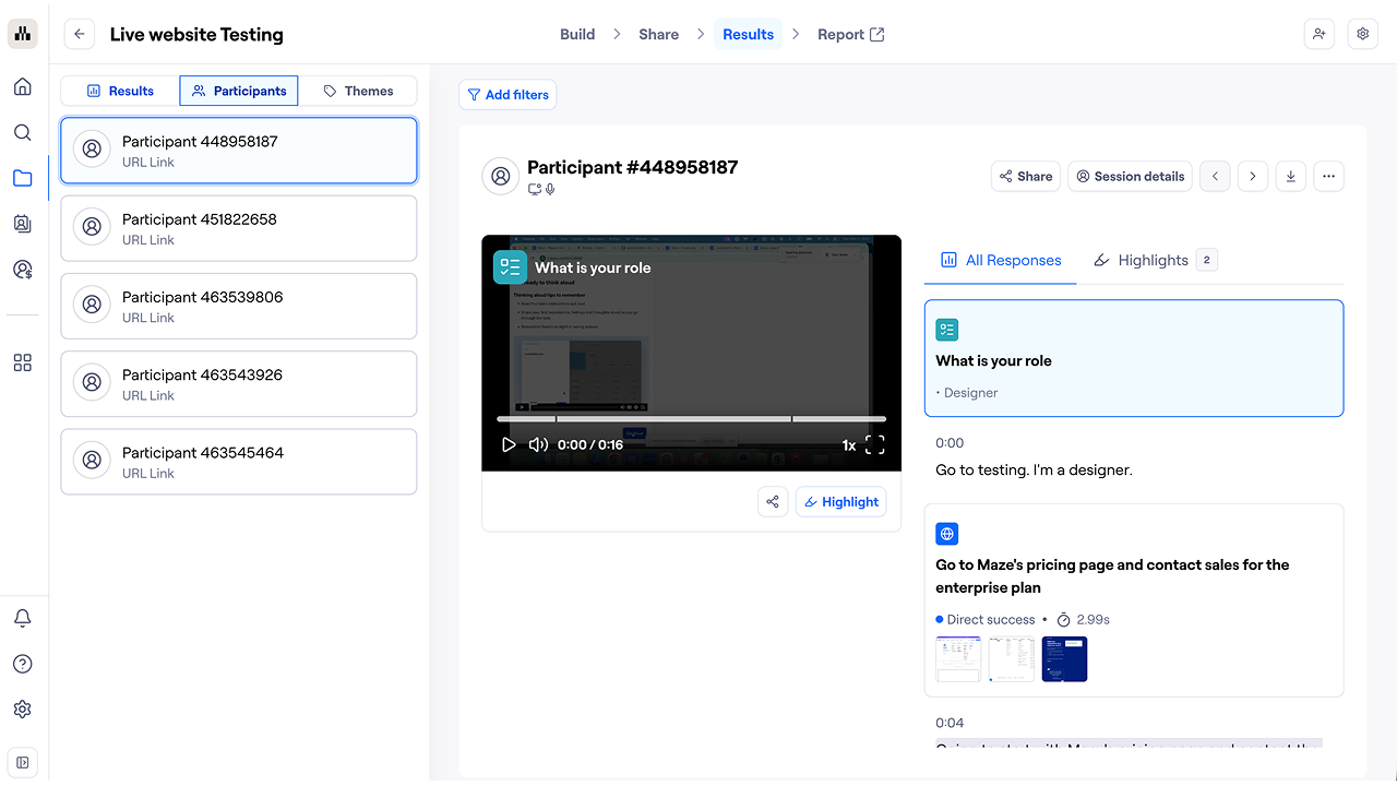 With automatic transcripts, you can quickly scan through participant responses for specific topics or keywords, and extract quotes without having to listen through entire recordings.