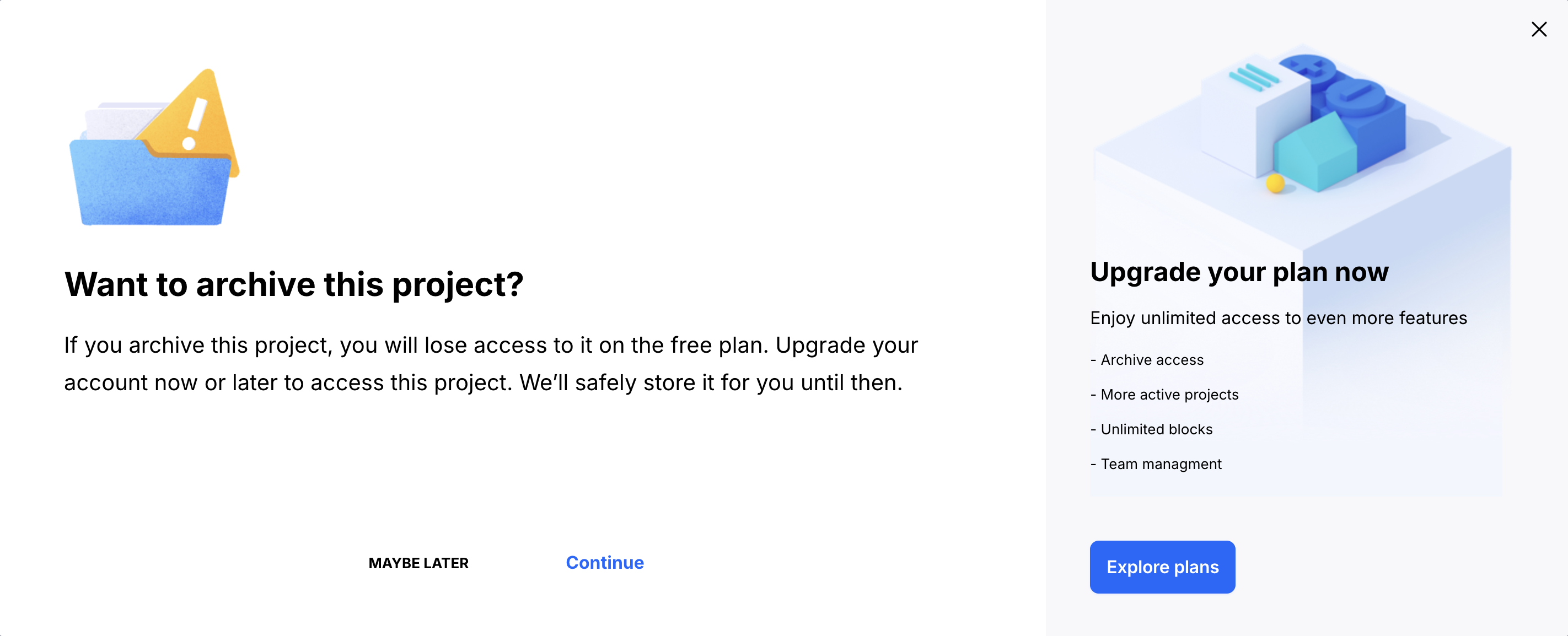 If you’re on the Free plan, you can archive projects. However, viewing and unarchiving requires a paid plan.