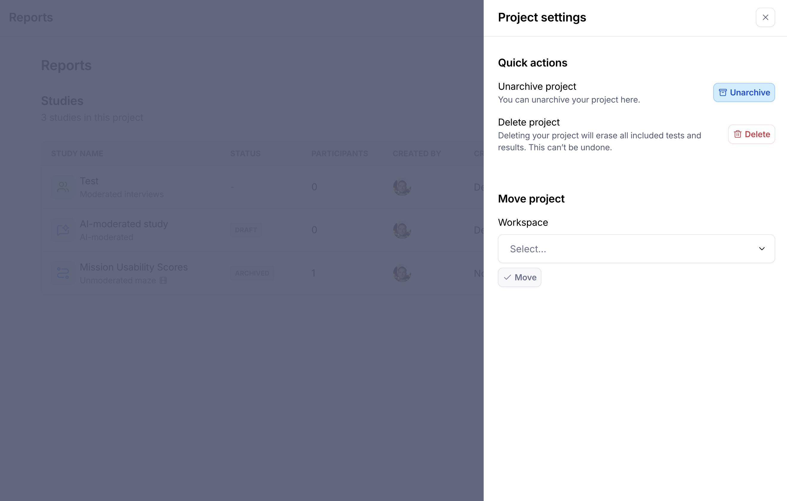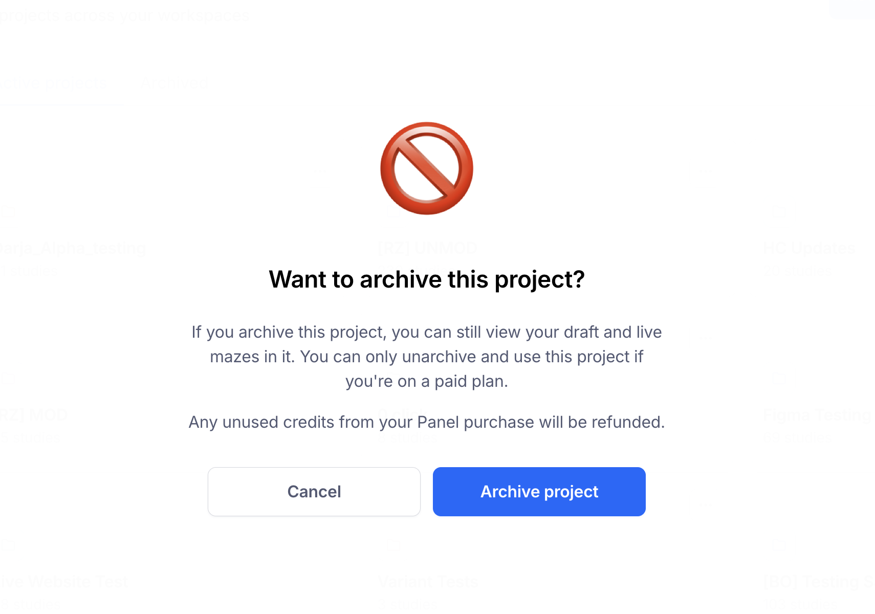 If you’ve previously archived a project but want to work on it again, and you’re on a paid plan, you can unarchive it. This will restore all live maze studies.