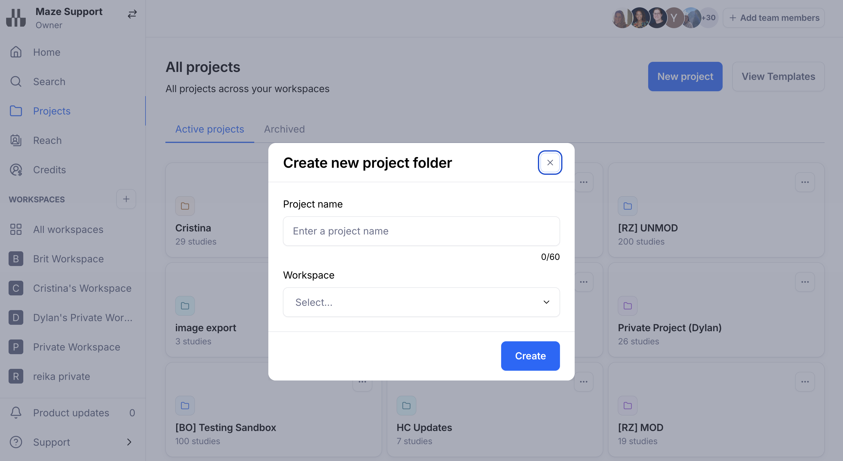 Projects act like folders, where you can add multiple studies (mazes or interview studies).