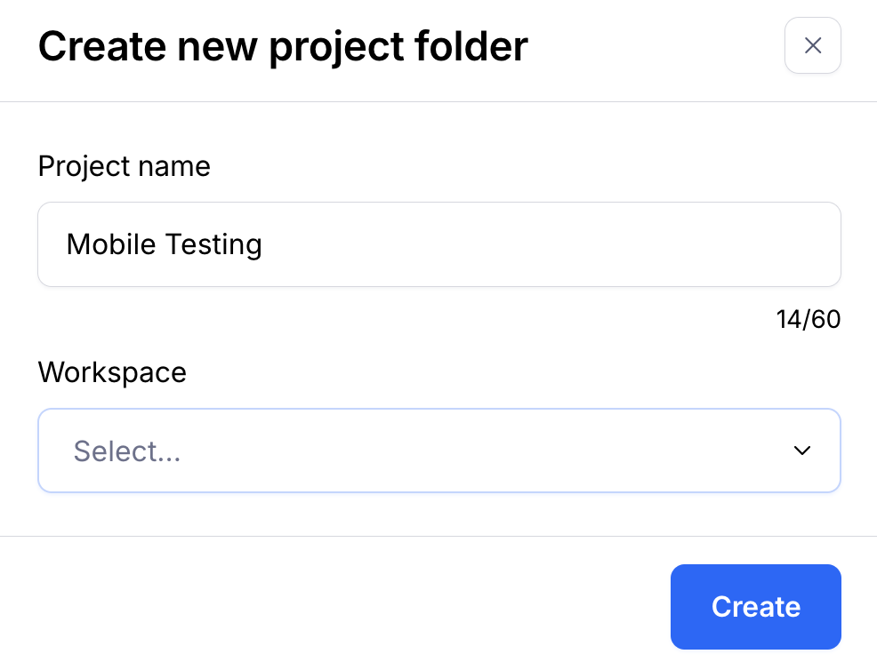 Enter an optional name for your project, select your desired workspace and click Create.