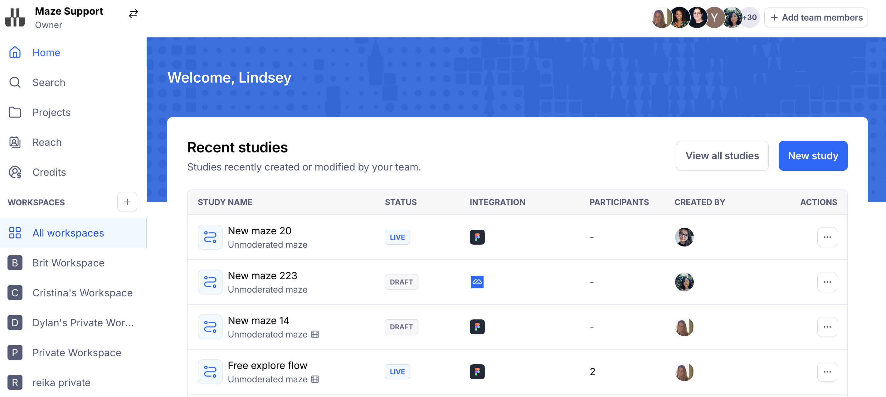 To view all workspaces on your team, click All workspaces in the side navigation bar.