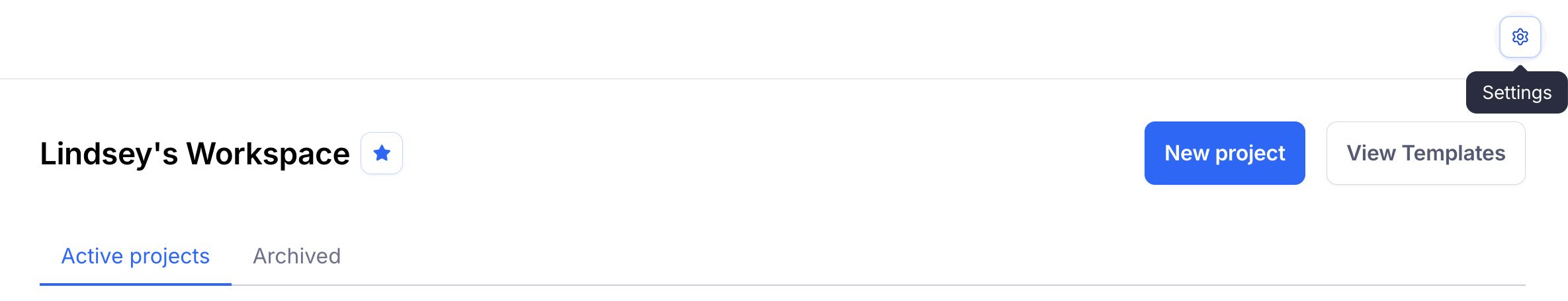 To open the workspace settings, open the relevant workspace and click the Settings menu.