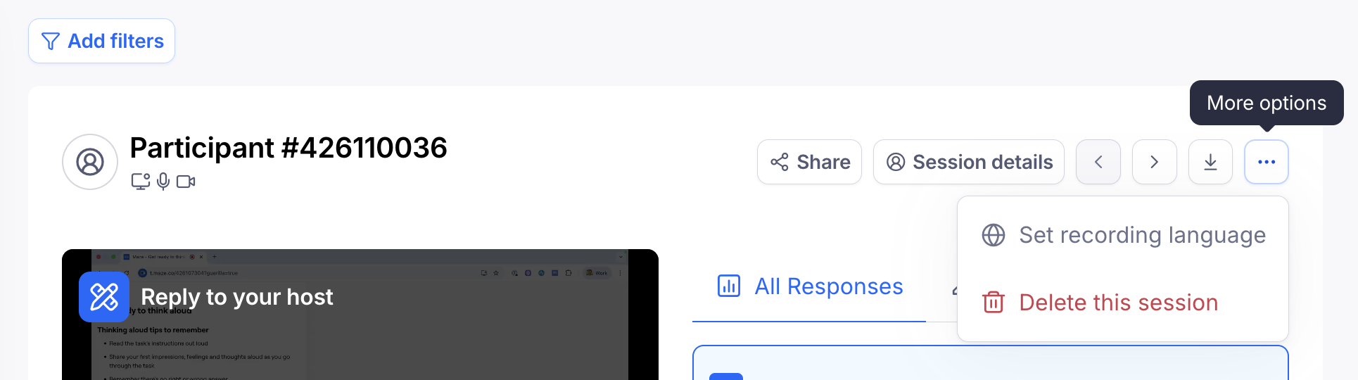 - With your study open, navigate to the Results tab and select the Participants tab from the left hand panel