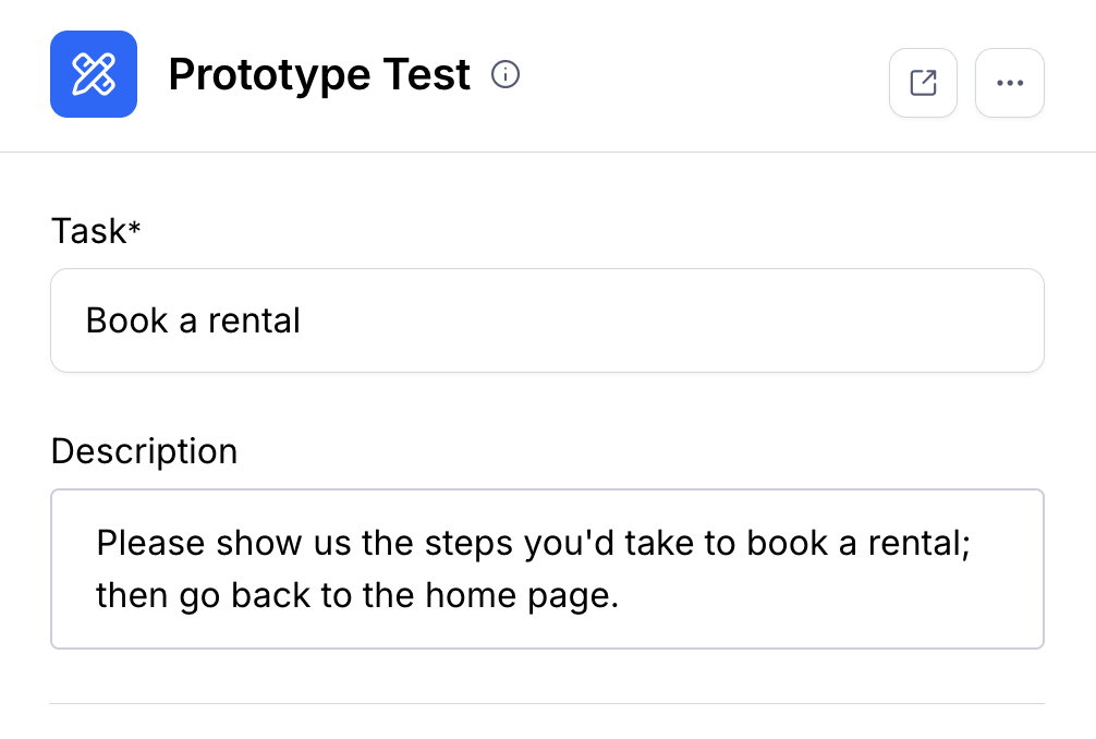 The task should set the mission goal, i.e. what you want your testers to do. The description should include any instructions or other information required for the task.