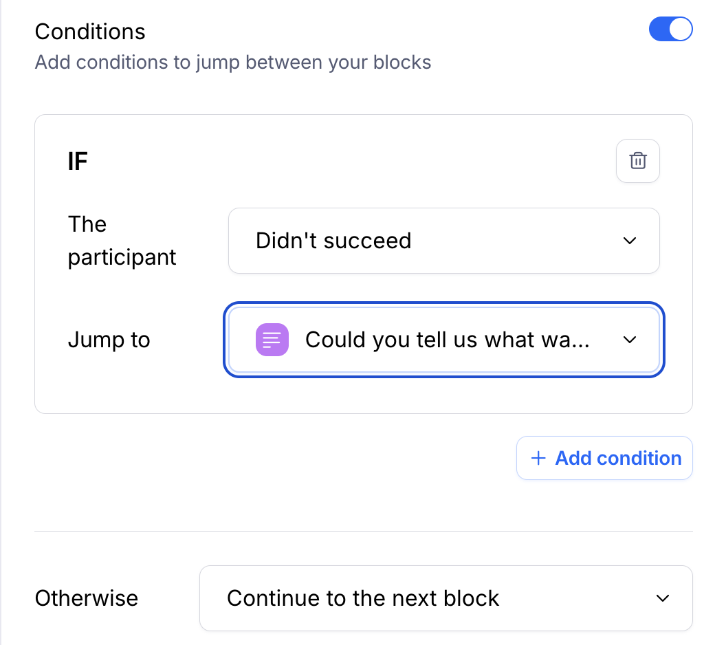 If needed, enable Conditions to apply logical routes based on actions your testers take during the mission.