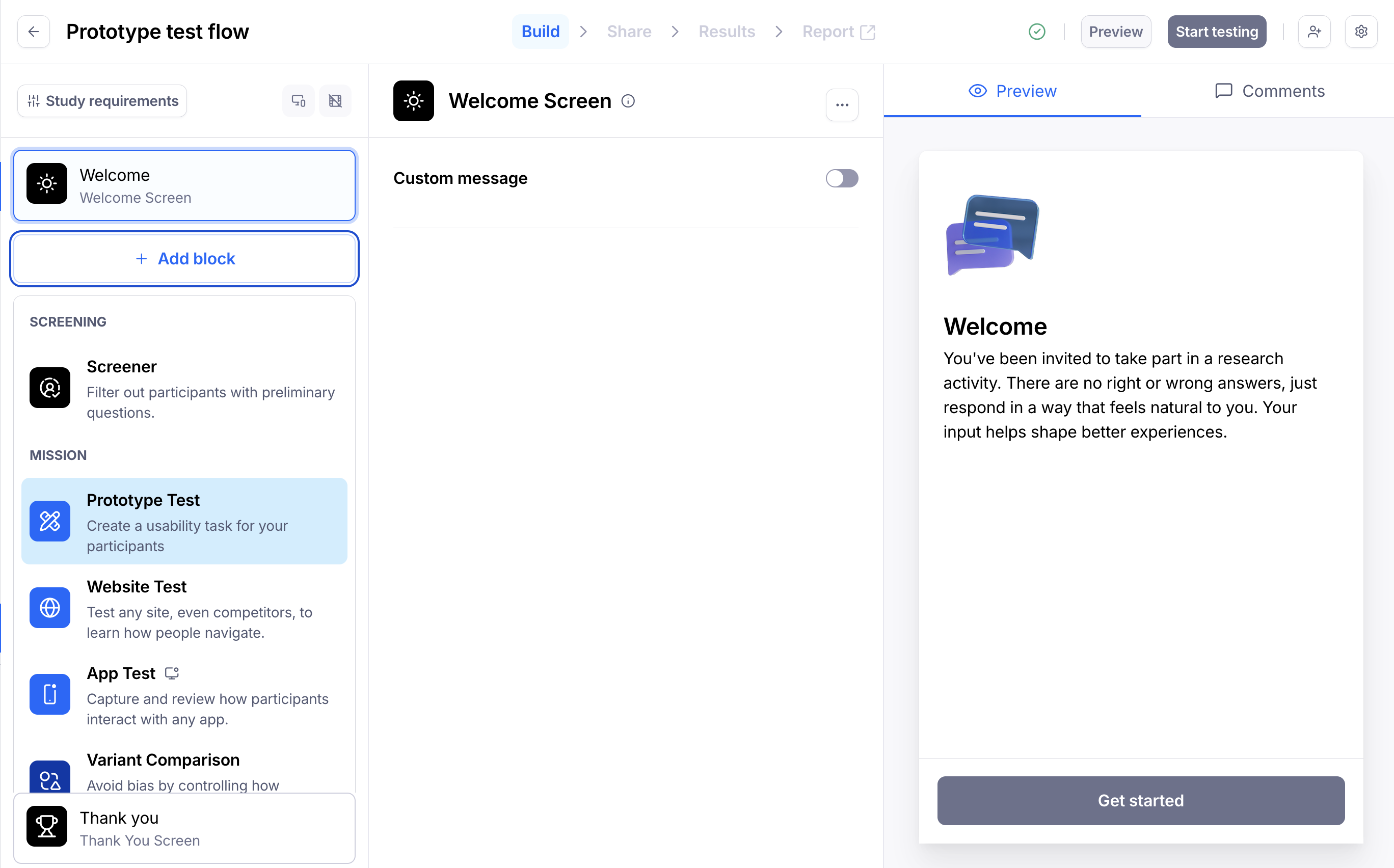 This article teaches you how to set up a prototype test. To learn more about website tests, check out this article.