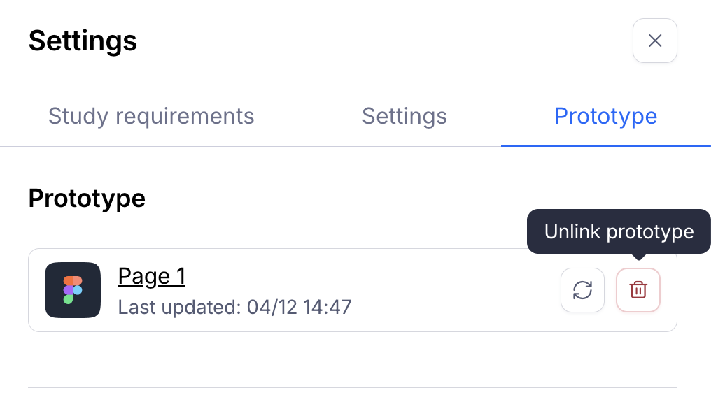 To unlink a prototype, click the ••• menu next to the start screen. This will open the prototype settings.