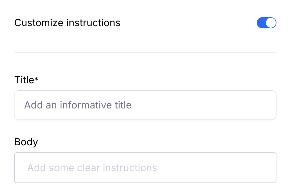 Instructions: You can use the default title and description you see in the preview, or enable Customize instructions to add your own.
