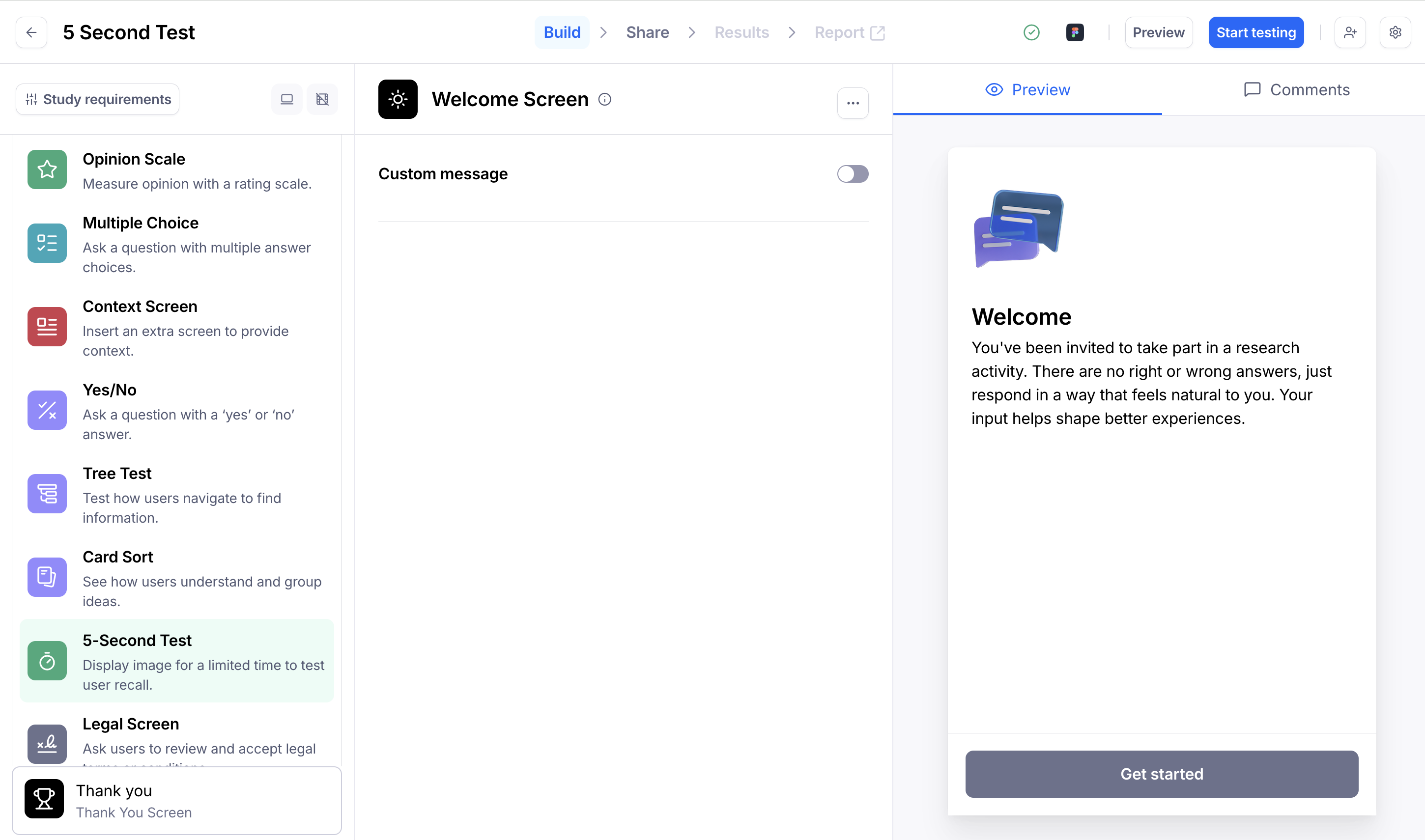 A 5-Second test allows you to add a static image to present to your testers.