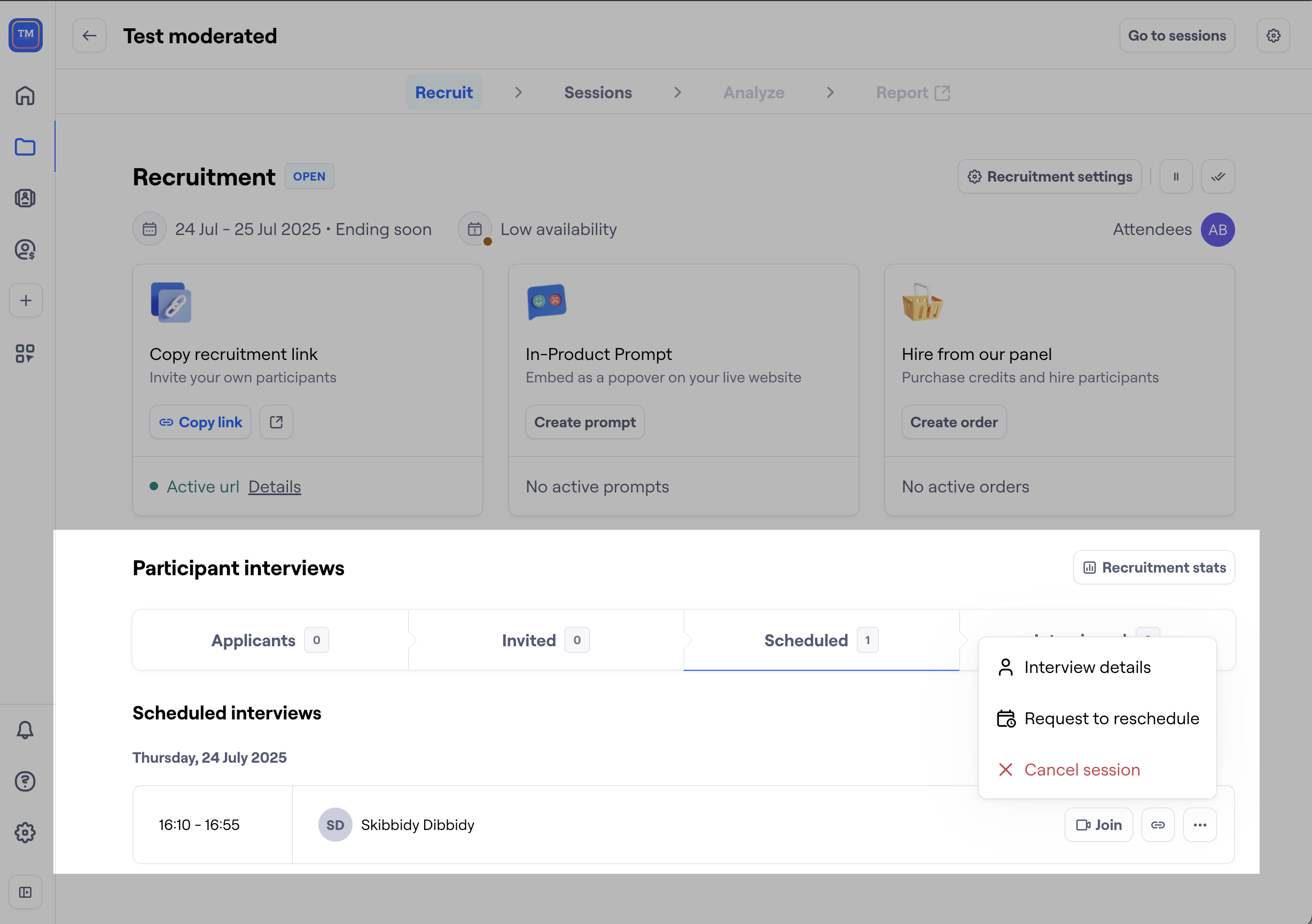 Yes! You can now request participants to reschedule their moderated study interviews to a new time that works better for you. You can request to reschedule interviews for both your own participants and also participants hired through a panel.