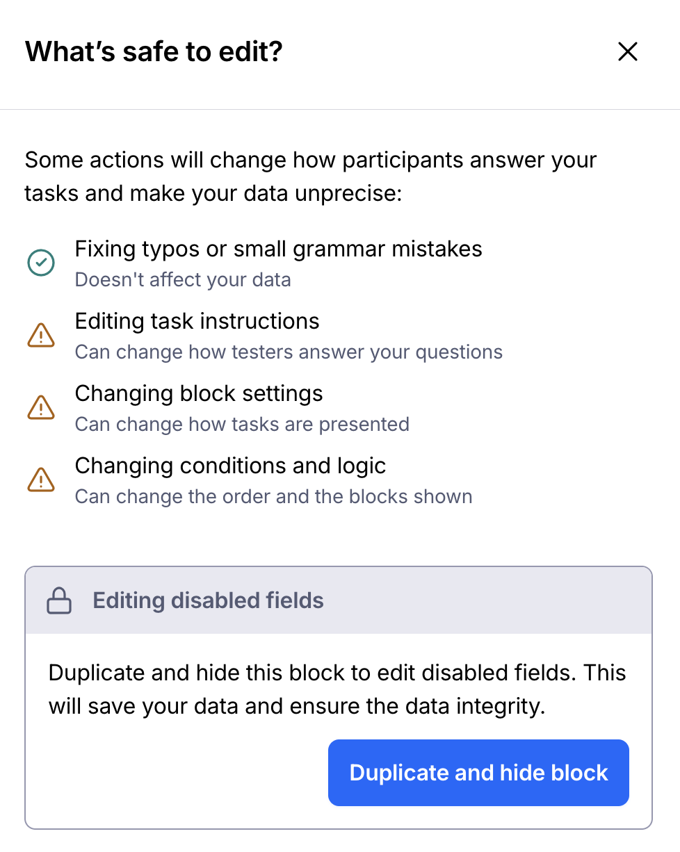 Some changes can impact how testers experience the test and the accuracy of your results data. This is particularly sensitive if you’ve already started receiving responses for that study.